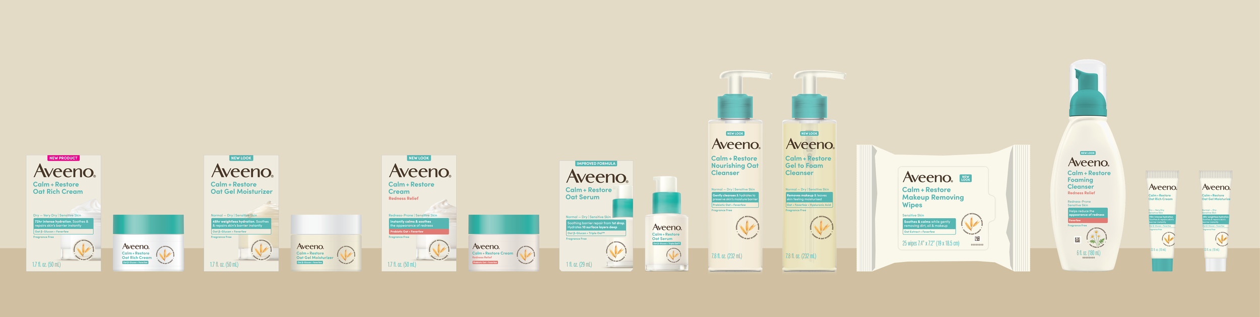Translate the recently completed Aveeno Body redesign to the Calm + Restore Face lineup.